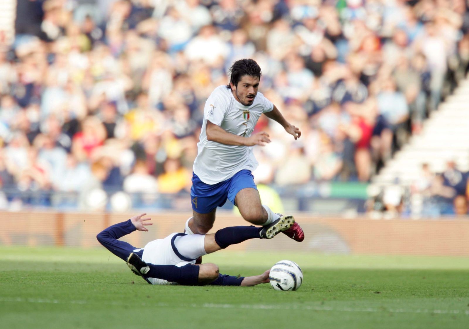 Gennaro Ivan Gattuso ha passato quasi 15 anni in maglia azzurra, tra le Giovanili e la Nazionale maggiore: dal 13 settembre 1995, data dell’esordio in Under 18, al 24 giugno 2010, ultima partita al Mondiale in Sudafrica. In totale ha collezionato 108 presenze tra Under 18, 21 e A, con 5 gol, il trionfo Mondiale 2006 a Berlino, sei anni dopo la vittoria dell’Europeo Under 21 in Slovacchia.