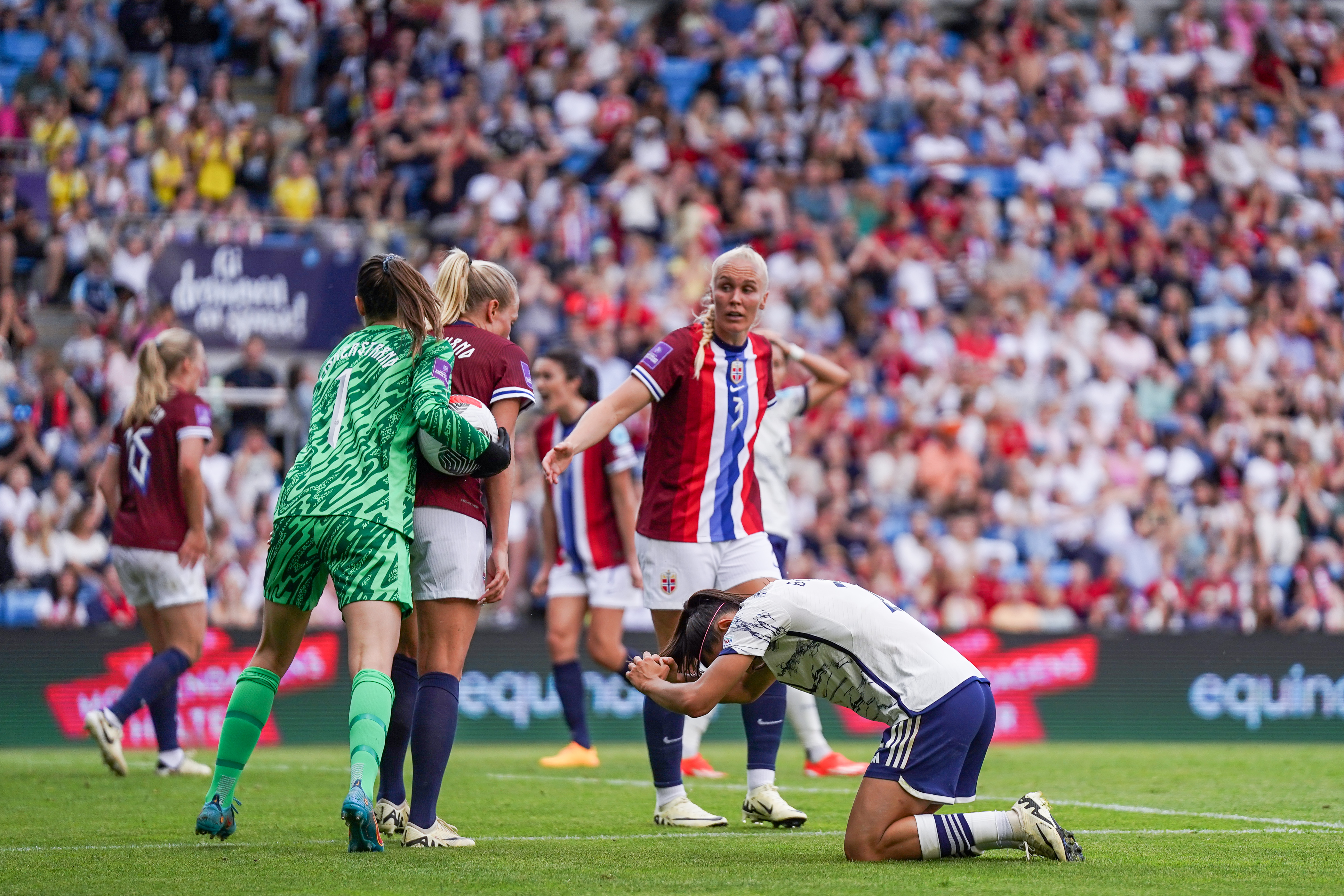 The second half kicked off with Caruso's miracle block, as she slid in to deflect Terland's low shot to deny a certain goal. The game unfolds with continuous end-to-end action, and in the 55', Cantore, perfectly put in by Bonansea, narrowly missed the post with a curling shot from outside the box. Five minutes later, both coaches begin the flurry of substitutions, with Naalsund and Hegerberg coming on for the hosts, while Bonfantini and Dragoni replace the exhausted Bonansea and Greggi. The 17-year-old from Barcelona, in her tenth appearance for the national team, was inspired. On 71', she left a couple of opponents behind and unleashed a rocket that narrowly missed the crossbar.