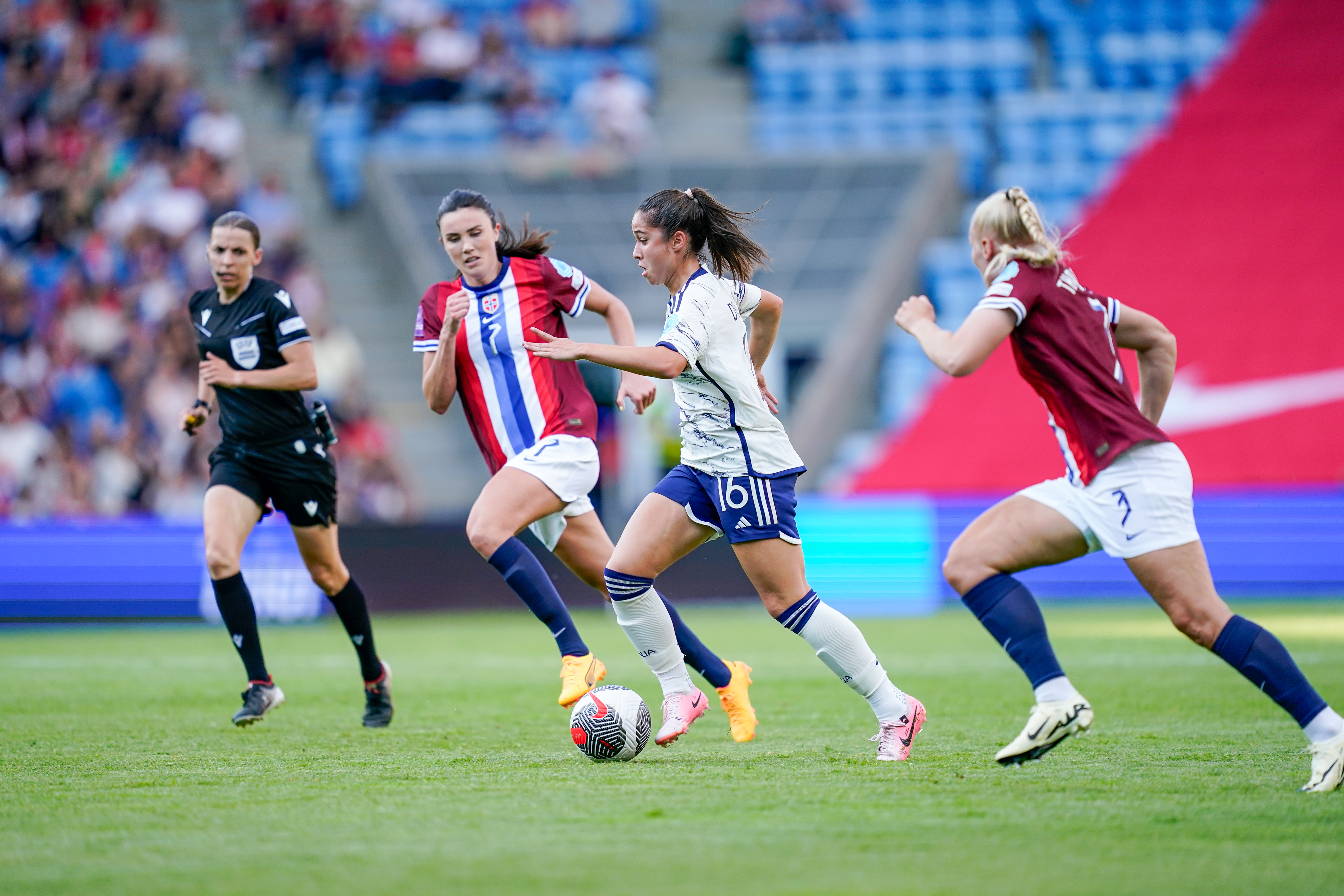 Gemma Grainger responded with the traditional 4-3-3 formation, relying on Hansen in attack, former Roma player, Haug and Ildhusøy, the last two having scored along with Bjelde e Terland in the 4-0 win against Finland. The English coach left Hegerberg, Pallone d’oro winner in 2018 and top scorer of the squad with 47 goals, on the bench.