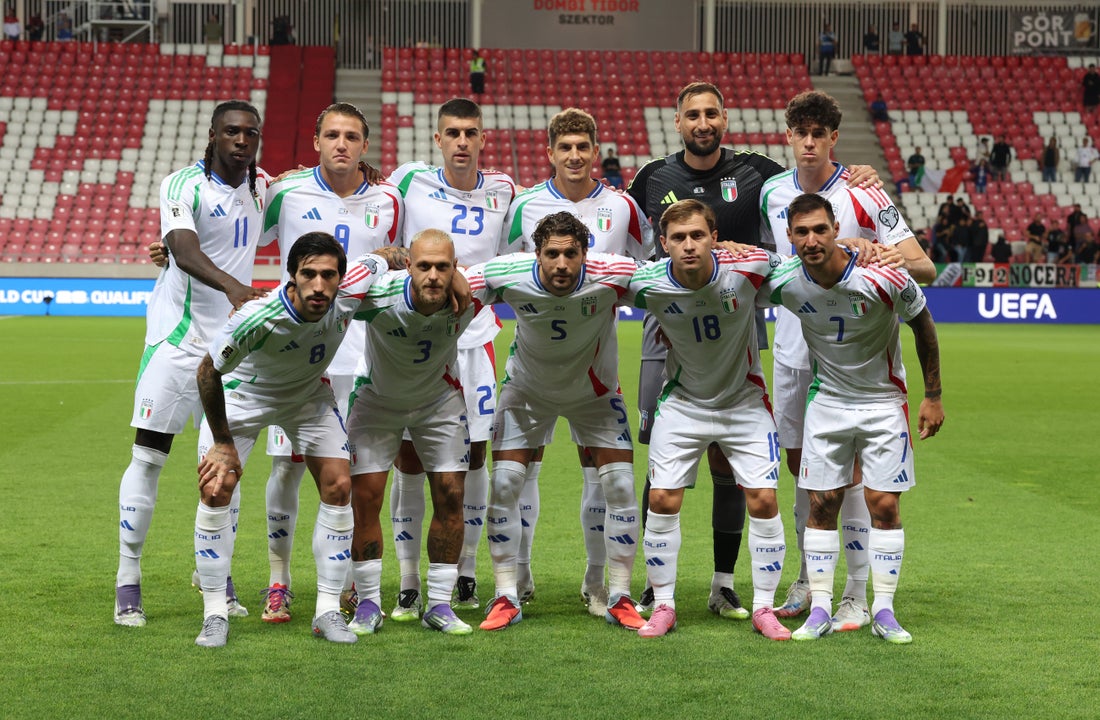 ITALIA (4-4-2): Donnarumma; Di Lorenzo, Mancini, Bastoni, Dimarco (78' Cambiaso); Tonali, Locatelli, Barella (68' Frattesi), Politano (68' Orsolini); Retegui (88' Maldini), Kean (78' Raspadori). Unused subs: Meret, Vicario, Bellanova, Gatti, Calafiori, Rovella, Esposito. Head Coach: Gattuso.
