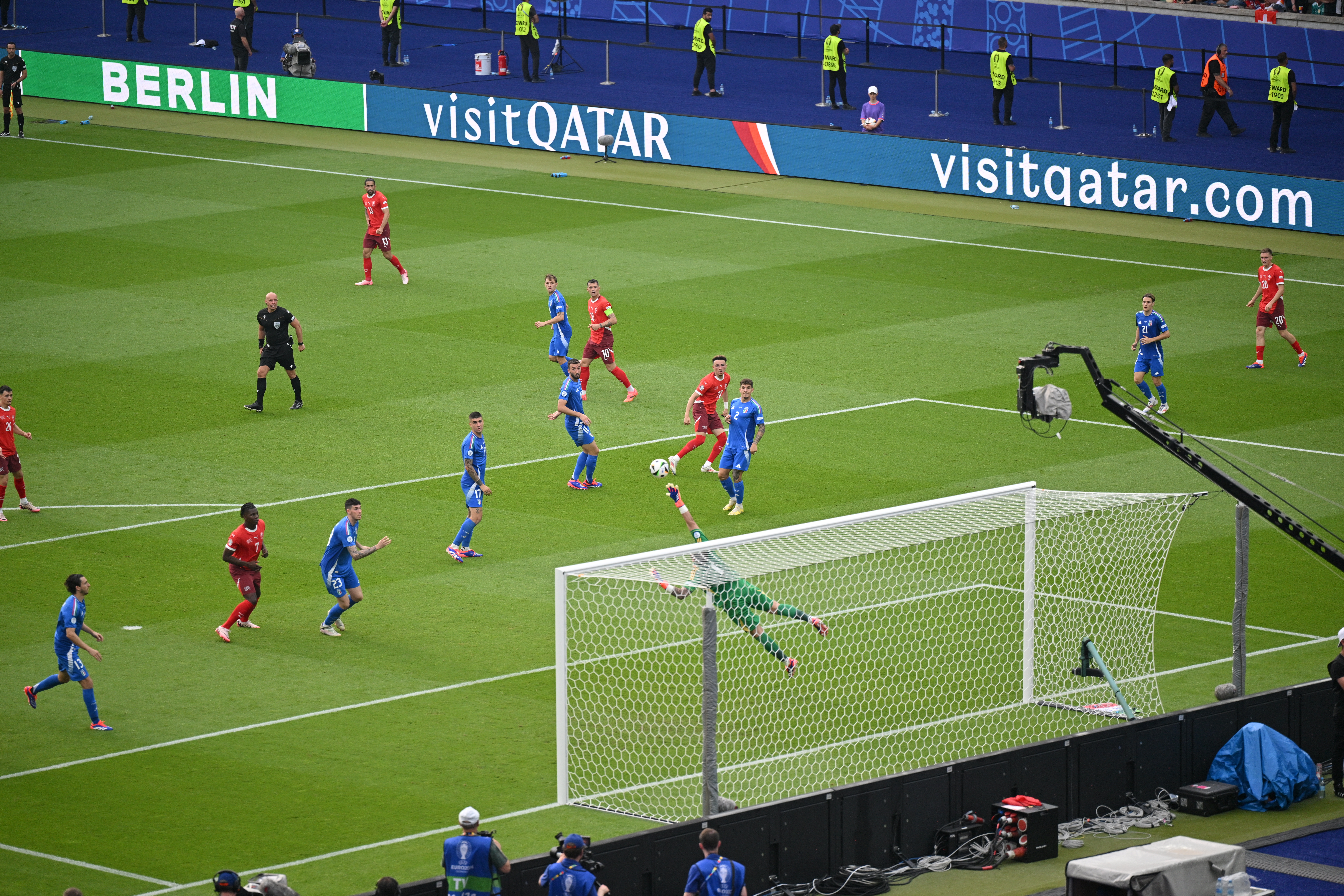 THE MATCH. Compared to Croatia vs. Italy, Spalletti returned to a four-man defence. The Head Coach, who was without the suspended Calafiori (Widmer was also unavailable for Switzerland due to suspension) and the injured Dimarco, made six changes to his starting line-up, with Mancini making his EURO 2024 debut in defence and El Shaarawy selected on the left of an attack that also featured Chiesa and Scamacca. Switzerland made a bright start, with Ndoye and Aebischer making a nuisance of themselves down the left flank, but Donnarumma’s goal wasn’t initially threatened. That was until the 23rd minute, when Embolo, who had been kept onside by Darmian, found himself one on one with the Azzurri goalkeeper, who produced a brilliant stop to keep the game level.