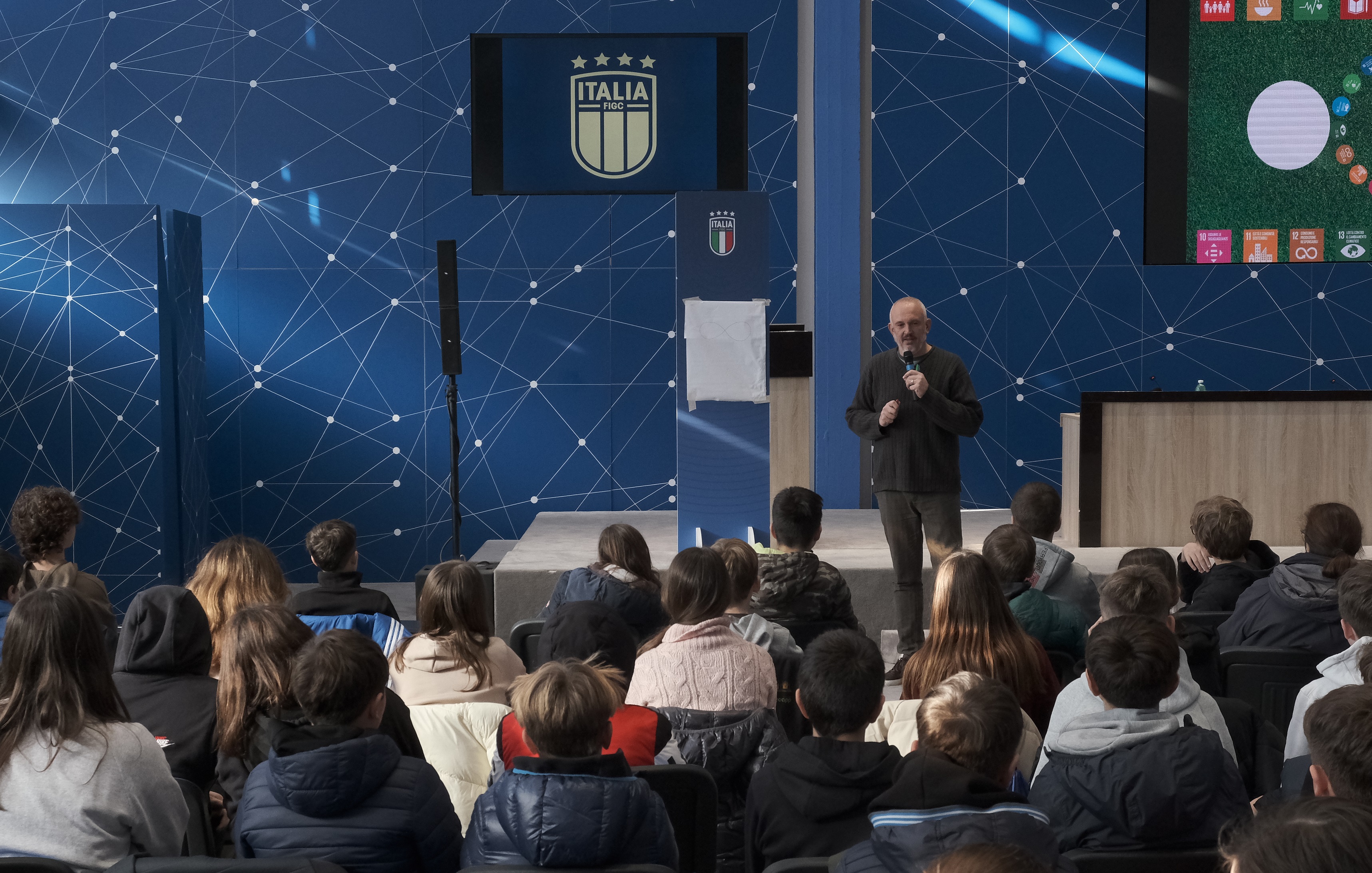 Questo incontro tra calcio e arte, organizzato dalla FIGC in collaborazione con Zerynthia, Associazione per l'Arte Contemporanea OdV, ha visto oggi una prosecuzione del progetto grazie ad alcuni laboratori di educazione civica e cittadinanza attiva che hanno coinvolto ragazzi delle scuole secondarie di primo e secondo grado dell’Istituto Comprensivo Coverciano di Firenze e del Liceo Manzoni di Caserta.