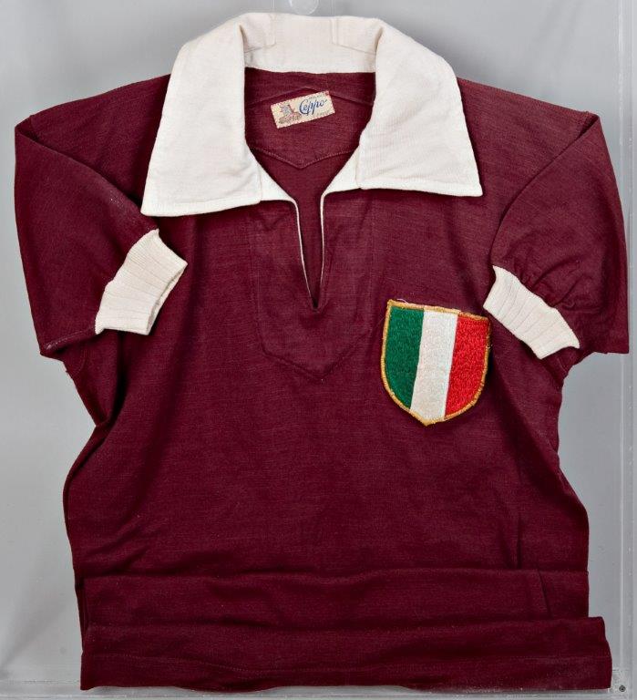 IL GRANDE TORINO AL MUSEO DEL CALCIO. Al Museo del Calcio è possibile rivivere il ricordo del Grande Torino attraverso diversi cimeli: dalla maglia granata di Virgilio Maroso, indossata in occasione della tournée in Brasile nell’estate del 1948, alla maglia azzurra vestita da Romeo Menti in Nazionale, che è andata ad arricchire la collezione dallo scorso gennaio. Il Museo già ospitava un altro cimelio appartenuto al campione di Vicenza: una spilla della Fiorentina, squadra in cui aveva militato e a cui era molto affezionato, che portava sempre con sé. Dopo lo schianto sulle colline di Superga l’ex Ct Vittorio Pozzo, chiamato a riconoscere le salme di quei giocatori che aveva allenato in Nazionale, riconobbe proprio dalla spilla il corpo senza vita di Menti.