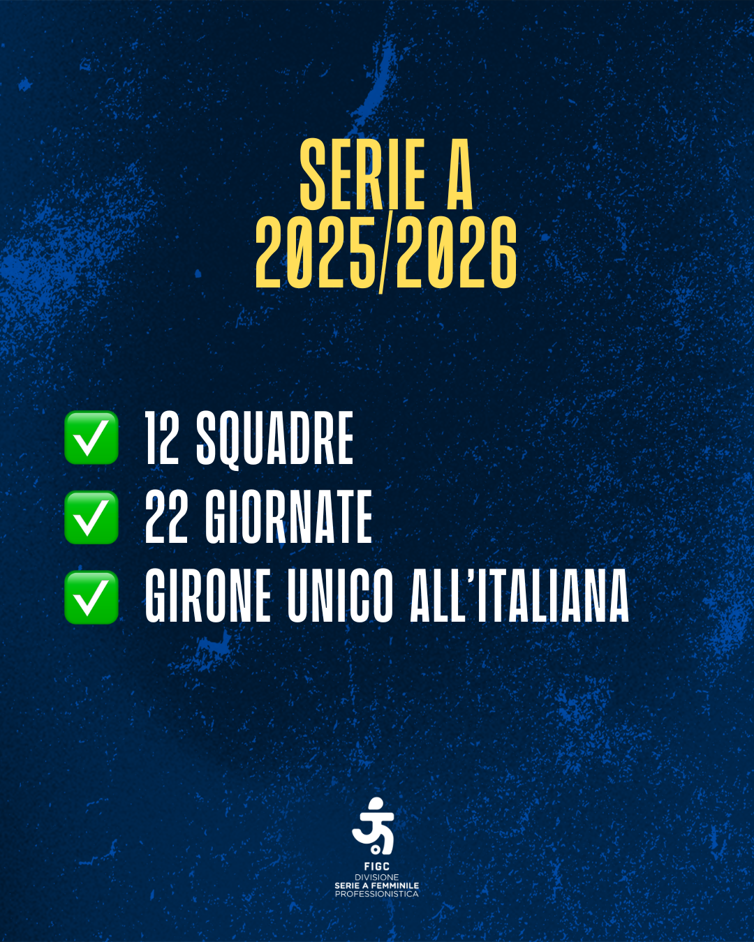 COMPETIZIONI 2025-26 L'Assemblea ha approvato il format della Serie A Femminile per la stagione 2025-26. Vista la riforma dei campionati femminili, con l'organico della Serie A che passerà da 10 a 12 squadre e quello della Serie B da 16 a 14, la Serie A Femminile 2025-26 si svolgerà con un girone unico e partite di andata e ritorno, per un totale di 22 giornate.