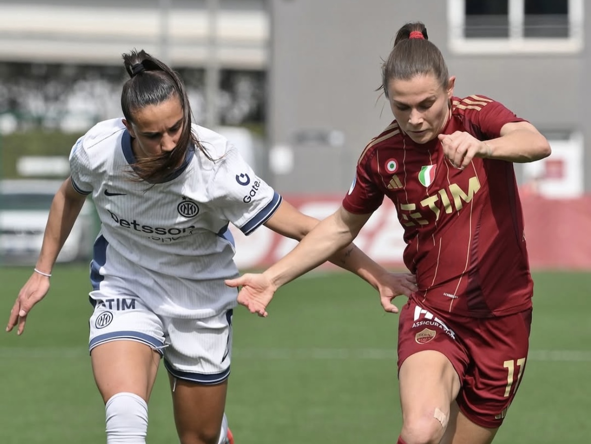La ripresa, che inizia con l’ingresso in campo di Detruyer al posto di Schough per il Biscione, segue la scia della fine del primo tempo, con Giugliano che al 51’ sfodera un destro a giro a fil di palo. La centrocampista ci riprova tre minuti dopo con una conclusione all’altezza del dischetto, respinta miracolosamente dal muro nerazzurro. I cambi arrivano anche per Spugna (Di Guglielmo, Corelli e Pilgrim rilevano Haavi, Giacinti e Kuhl), che punta a dare più energia alla manovra offensiva. Anche l’Inter però si fa vedere dalle parti di Kresche: al 65’ Cambiaghi (dal 60’ in campo per Pavan) serve bene Merlo, ma il portiere giallorosso le dice di no. Dalla parte opposta, prima Dragoni centra la traversa calciando potente dal limite, poi Corelli costringe Andrés ad un altro intervento provvidenziale. L’episodio che cambia le sorti del match arriva però al 66’, quando l’arbitro assegna alle padrone di casa un calcio di rigore per un contatto tra Milinkovic e Viens nell’area piccola nerazzurra. Tra le proteste della squadra ospite, Giugliano si incarica della battuta dagli undici metri e – glaciale – non sbaglia a tu per tu con Runarsdottir. 10° gol per la giallorossa nella Serie A 24/25, che diventa la quarta stagione in doppia cifra di reti per la classe ’97, dopo le annate 2023/24 (sempre con la Roma), 2016/17 con l’AGSM Verona (15) e 2015/16 con l’Atalanta Mozzanica (10). L’1-1 innesca il forcing delle Campionesse d’Italia in carica, che al 78’ centrano un altro legno con Di Guglielmo dopo una leggera deviazione e non concedono più spazi alle ripartenze avversarie. Al minuto 95’ l’insistenza delle capitoline viene premiata, con l’incornata vincente di Di Guglielmo al termine di un’azione prolungata. Quarta rete per il difensore azzurro in questo campionato, realizzata nella sua 100esima gara con il club in tutte le competizioni. Termina 2-1 per la Roma al Tre Fontane, con un successo che vale l’aggancio all’Inter al secondo posto in classifica (38 punti a testa).