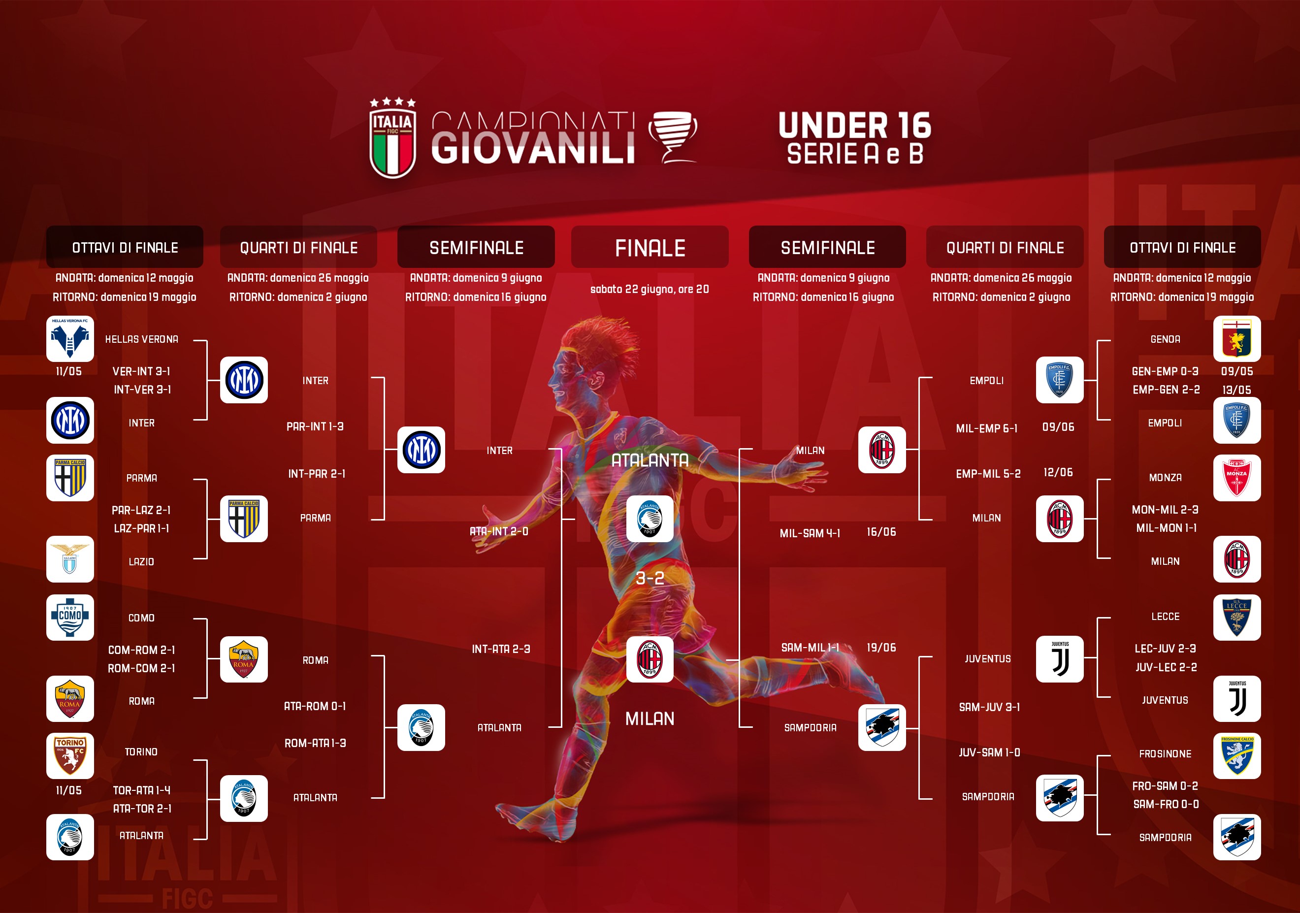 POST PARTITA. Rammaricato per il risultato, ma orgoglioso dei suoi a fine partita Simone Baldo: "Sicuramente ci è mancato qualcosa, un po' di brillantezza e freschezza nelle gambe nella ripresa: sapevamo che loro avevano una fisicità che avremmo faticato a contenere, peccato perché siamo rimasti comunque sempre in partita - commenta l'allenatore del Milan -. Ce l’abbiamo messa tutta: è stato un bel percorso, dispiace per i ragazzi che hanno dato l'anima, ma dobbiamo essere soddisfatti di quanto fatto". Abbracciato dai ragazzi e dal suo staff al triplice fischio, Alessio Gambirasio è l’emblema della felicità: "All'intervallo eravamo sotto nel punteggio, ho detto ai ragazzi di crederci fino alla fine. Abbiamo fatto un cammino straordinario, con tante difficoltà, ma siamo cresciuti tantissimo e questa vittoria è la ciliegina sulla torta - racconta il tecnico nerazzurro -. Il secondo tempo di oggi è il riassunto dei due anni fantastici. Come settore giovanile il nostro obiettivo è far crescere i ragazzi: è vero abbiamo vinto lo scudetto ed è una soddisfazione enorme, ma lo scopo è formare giocatori e speriamo che qualcuno di loro fra qualche anno possa esordire in Serie A con la maglia dell'Atalanta, ricordandosi del successo di questa sera".