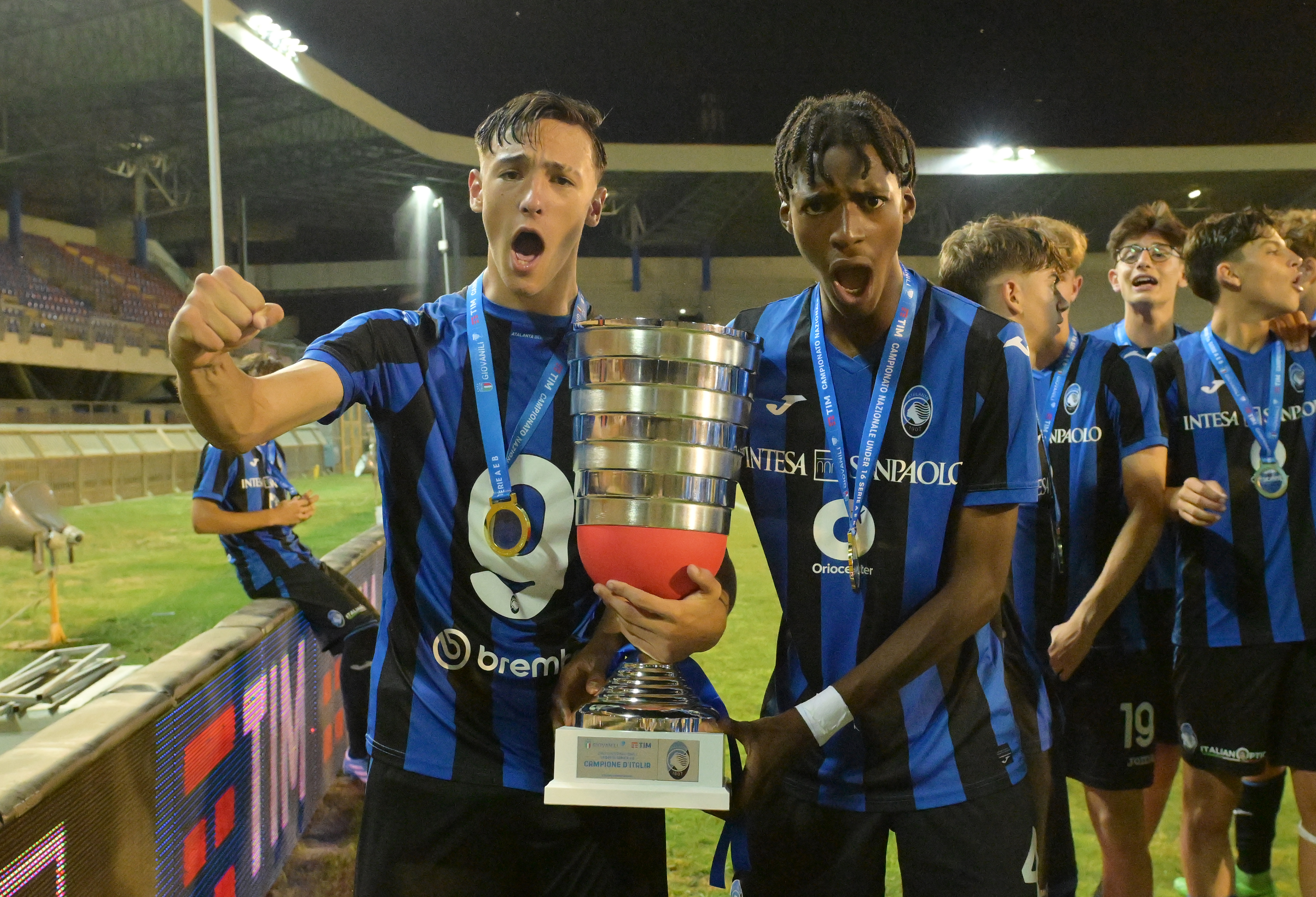 C'è sempre una prima volta. Pur considerato da anni uno dei migliori settori giovanili d'Italia, dall'istituzione nella stagione 2016/2017, l'Atalanta non era ancora riuscita a vincere lo scudetto Under 16. Ce l'ha fatta a San Benedetto del Tronto, di fronte a 600 spettatori - dato record dall’avvio dell'edizione 2024 delle Finali Giovanili TIM - superando 3-2 in rimonta il Milan, nella finale più bella e spettacolare ammirata fin qui nelle Marche. Una partita giocata a ritmo infernale da entrambe le squadre, che ha vissuto di continui ribaltamenti di fronte e risultato: una delizia per il palato. È stato il Milan a dare il primo scossone, trovando il vantaggio all'11' con la rete di Tartaglia, ma a inizio ripresa in un amen l'Atalanta l'ha ribaltata: segnando con Andrea Michieletto - fratello minore del celebre Alessandro, stella della pallavolo - la rete del pari in apertura di secondo tempo e ribaltando tutto con la doppietta di Isaac Collins Isoa per il momentaneo 3-1: due colpi di testa prepotenti sui quali neanche Longoni (campione d'Europa con la Nazionale Under 17) ha potuto nulla. Partita finita? Neanche a pensarlo: il Milan torna sotto al 59' con il gol di Simone Lontani e assalta la difesa bergamasca negli ultimi 15 minuti, senza però riuscire a segnare. Al triplice fischio la gioia atalantina è incontenibile, la gioia di una prima volta.