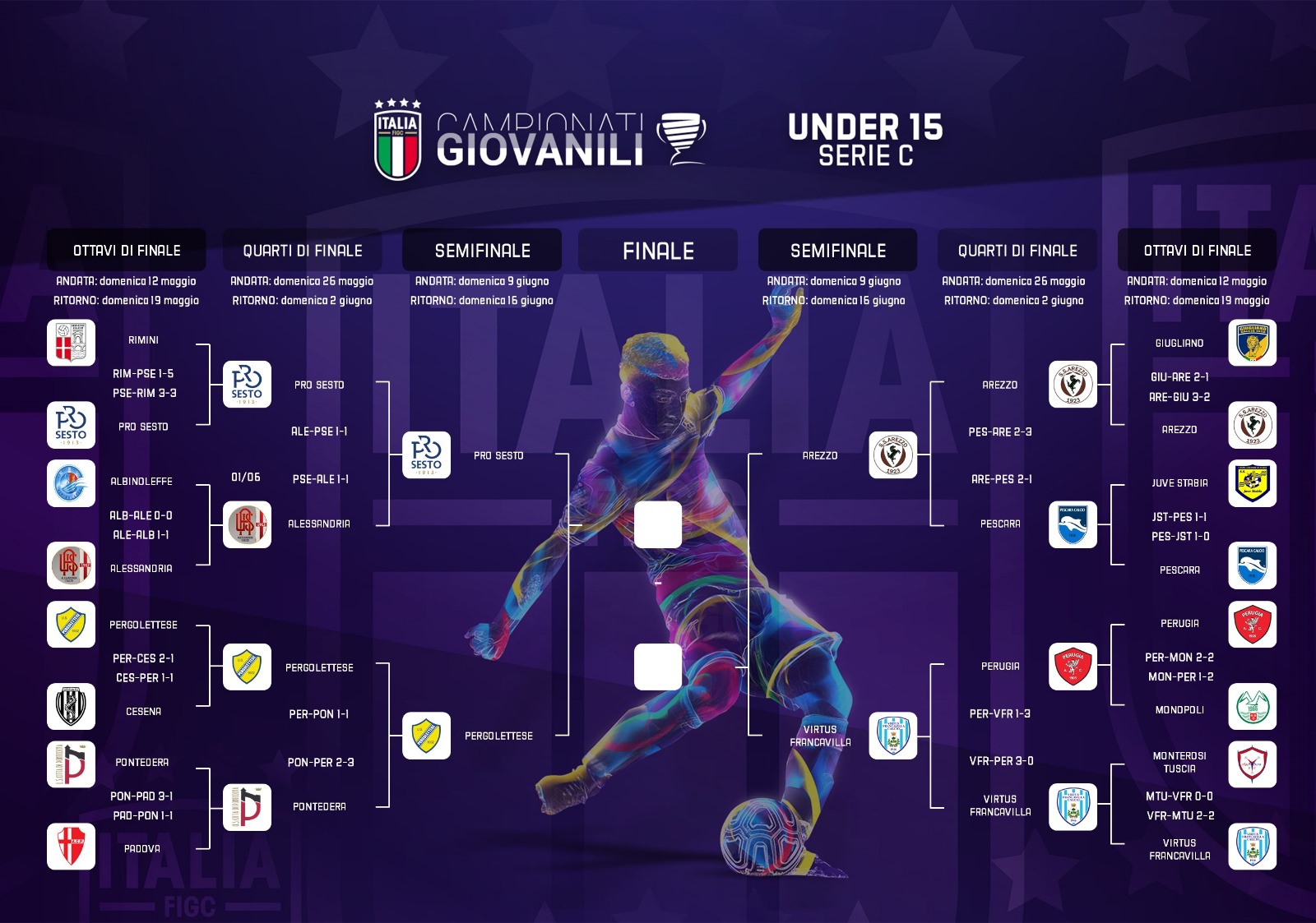 Pro Sesto-Pergolettese e Arezzo-Virtus Francavilla le sfide valide per la qualificazione alla finale nazionale del campionato Under 15Monday, June 3, 2024