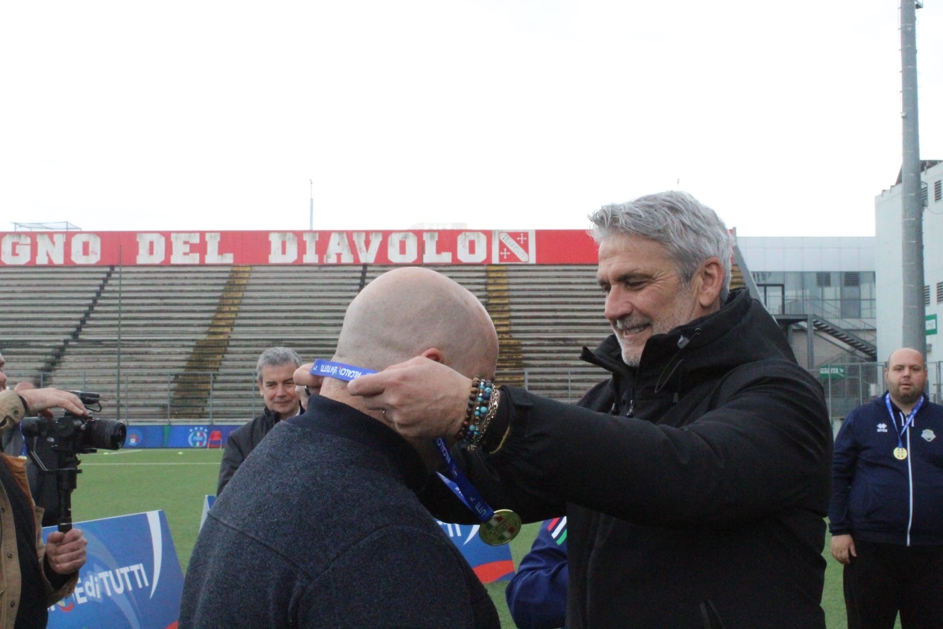 E, intorno a mezzogiorno e mezza, anche il collegamento in diretta con la trasmissione radiofonica 'Campioni del Mondo' di Rai Radiodue, nella quale sono intervenuti il responsabile nazionale della DCPS, Giovanni Sacripante, e il testimonial FIGC Ubaldo Righetti, ex nazionale azzurro, che sabato ha partecipato al convegno e si è poi intrattenuto in campo con gli atleti DCPS, partecipando alle premiazioni.
