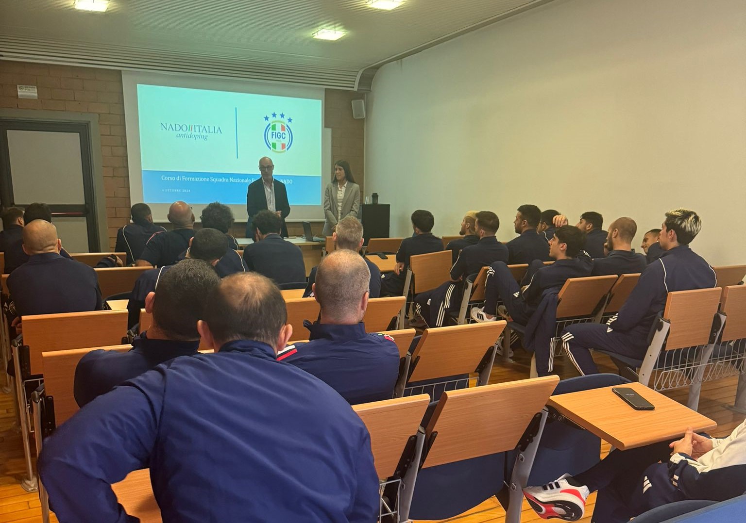 Quest’oggi, nel quinto appuntamento stagionale, Paolo Nucci per la Commissione Federale Antidoping e Chiara Vari per NADO Italia hanno incontrato la Nazionale A di Futsal e il loro staff medico e tecnico, in raduno presso il Centro di Preparazione Olimpica di Roma “Giulio Onesti”.