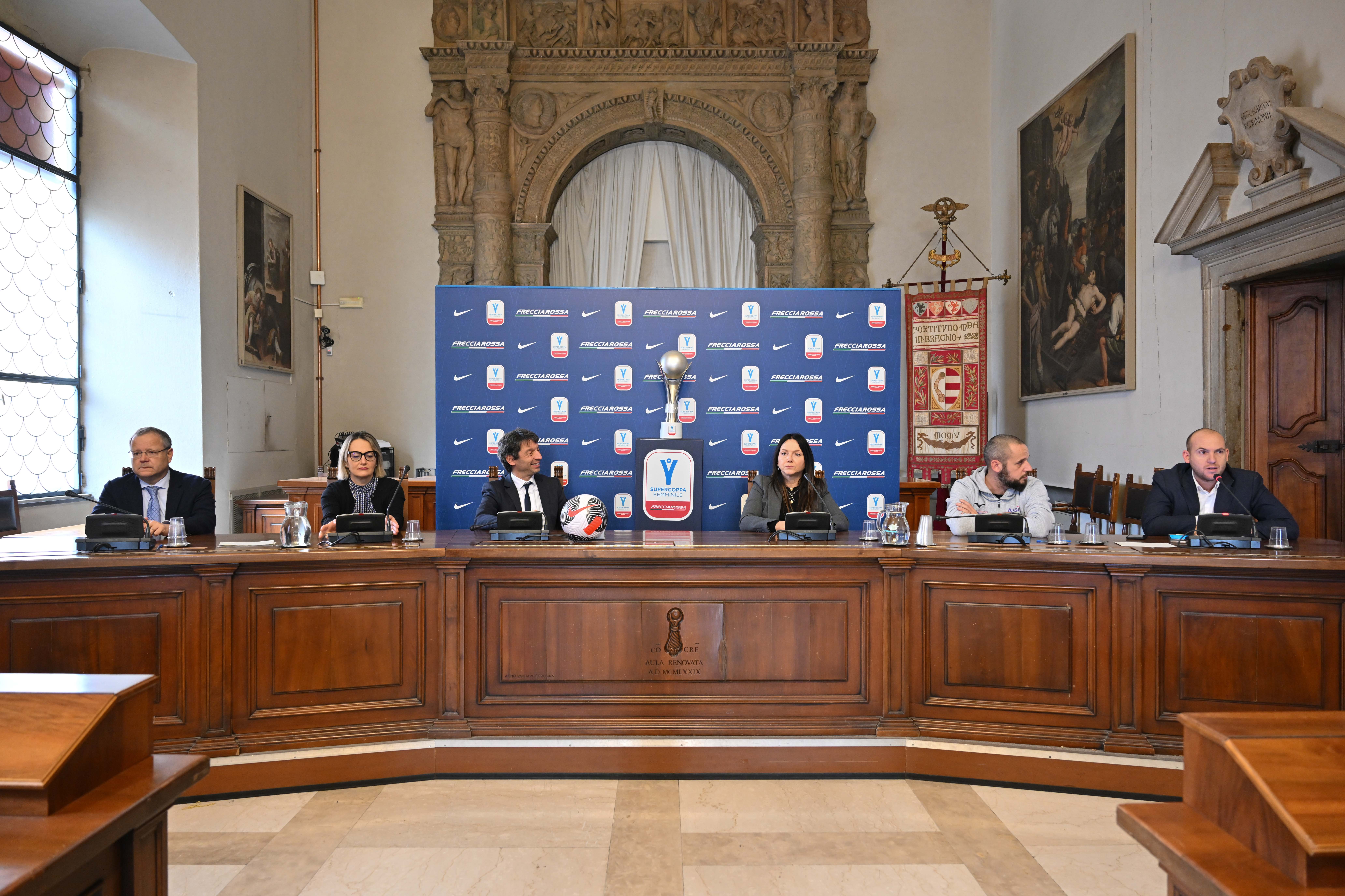 La Supercoppa Femminile Frecciarossa rappresenta il modo migliore per inaugurare il 2024. Domenica 7 gennaio alle 15.15 allo stadio 'Giovanni Zini' di Cremona andrà in scena il 19° capitolo della sfida infinita tra Roma e Juventus: da una parte le campionesse d'Italia e detentrici del trofeo (conquistato nel novembre del 2022 a Parma), dall'altra la squadra vincitrice della Coppa Italia e che dopo cinque scudetti di fila ha ceduto a maggio il tricolore alla Roma. Il tutto, in una città che anche tramite attività promozionali previste in questi giorni si prepara a vivere una grande domenica di calcio arricchita dall'intitolazione, nell'intervallo della partita, del settore Distinti dello stadio 'Zini' a Gianluca Vialli, del quale il 6 gennaio ricorrerà il primo anniversario della scomparsa. La Supercoppa Femminile Frecciarossa è stata presentata questa mattina presso la Sala dei Quadri del Comune di Cremona, alla presenza del sindaco Gianluca Galimberti, dell'assessore allo sport Luca Zanacchi, del presidente della Divisione Serie A Femminile Professionistica della FIGC Federica Cappelletti, del direttore generale della Cremonese Paolo Armenia e di Silvia Marchiori, responsabile vendita corporate e digital di Frecciarossa. Presente, in rappresentanza della famiglia Vialli, il nipote Riccardo.