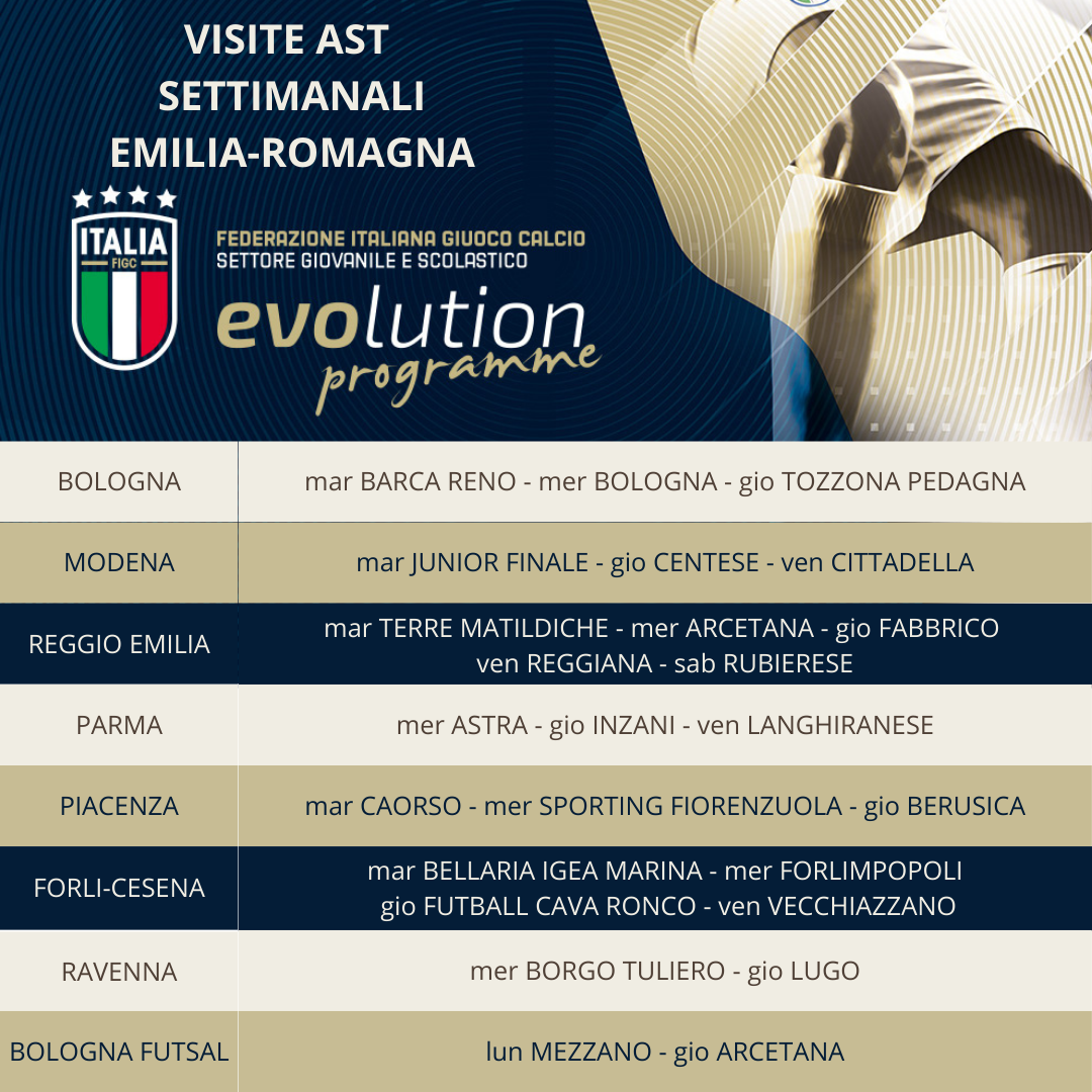 Visite AST Emilia Romagna per la settimana del 20 gennaio 2025 In allegato il calendario settimanale. Allegati SETTIMANA VISITE AST (15)