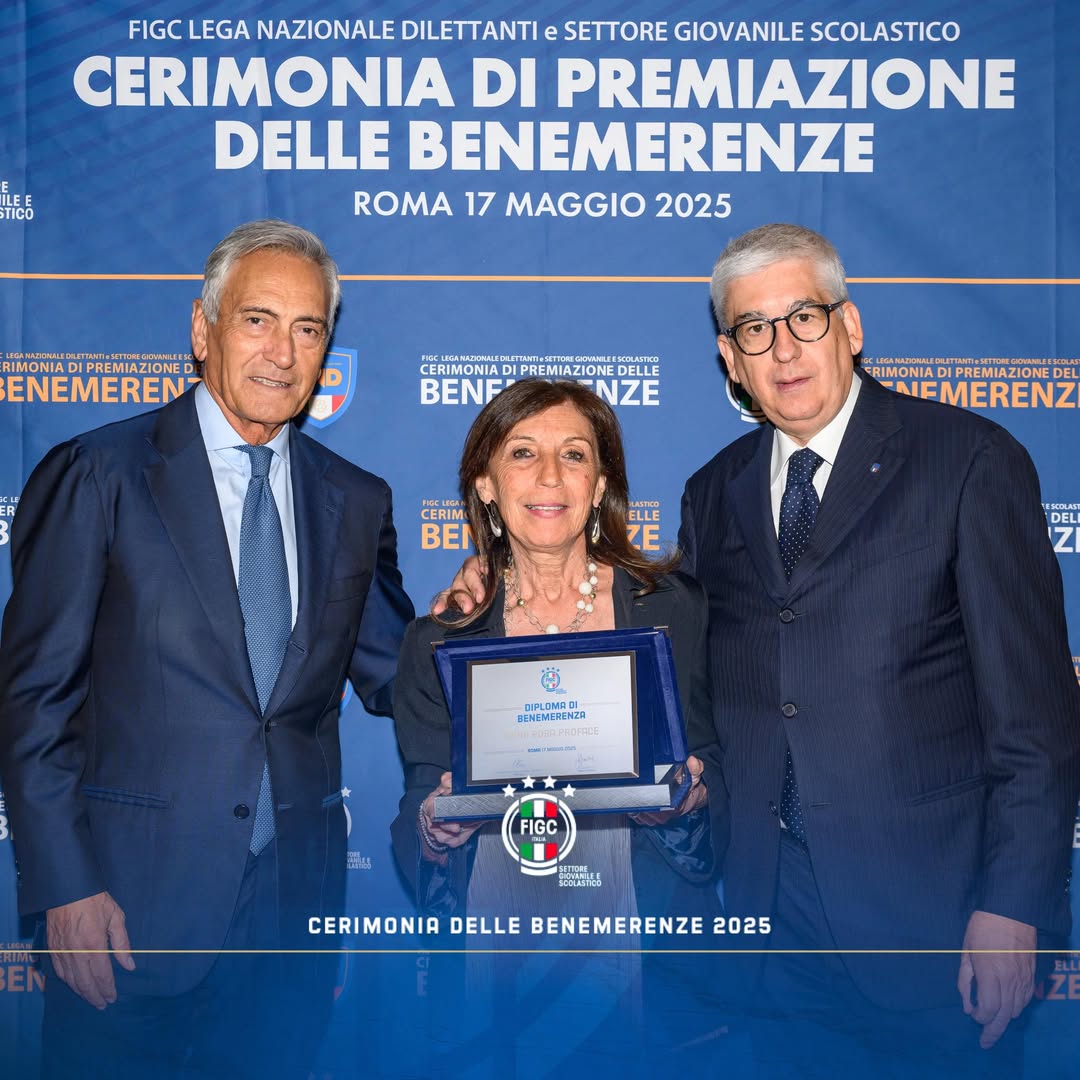 Sabato mattina, presso l’Holiday Inn Rome Eur Parco Dei Medici, si è tenuta la cerimonia 2025 delle Benemerenze LND-SGS, i premi per club e dirigenti di lunga militanza del calcio di base. Alla presenza del presidente della FIGC Gabriele Gravina, del presidente della Lega Dilettanti Giancarlo Abete e del presidente del Settore Giovanile e Scolastico della FIGC Vito Tisci, sono state consegnate complessivamente 232 onorificenze, di cui 33 riservate al il movimento giovanile: di queste, 8 per dirigenti federali con oltre 20 anni di attività, 22 a dirigenti di società con 20 e più anni di militanza e infine, all’U.S. Annonese (club piemontese premiato per i 100 anni di attività), al San Fruttuoso e alla Virtus Canelli (50 anni ciascuno). Due i premiati per il SGS Liguria: la Dirigente Federale Anna Rosa Proface e la società San Fruttuoso.