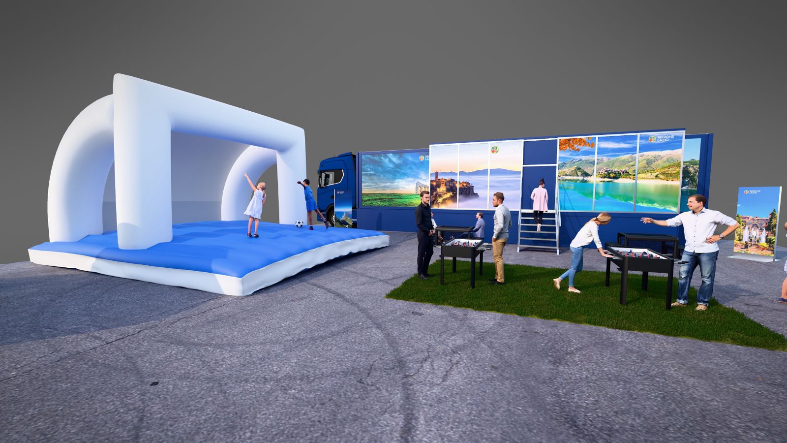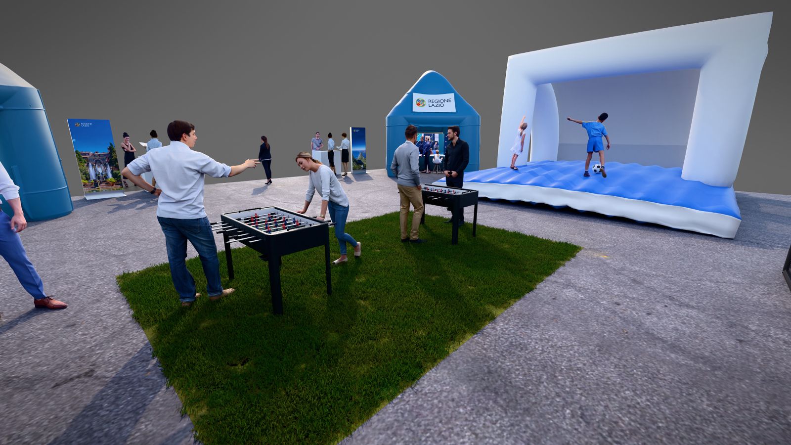 Il villaggio, allestito nel cuore delle città sede di gara, ospiterà la campagna 'Lazio: allenati alla bellezza' e offrirà numerose occasioni di intrattenimento per la cittadinanza: il quiz Laziopedia, per scoprire curiosità sul territorio regionale, la digital photo opportunity per condividere l'esperienza, un'area per la degustazione di prodotti tipici e la mostra 'Radici Azzurre - Storie di campioni nati nel Lazio', con cimeli originali e maglie di calciatori laziali che hanno segnato la storia del calcio italiano.