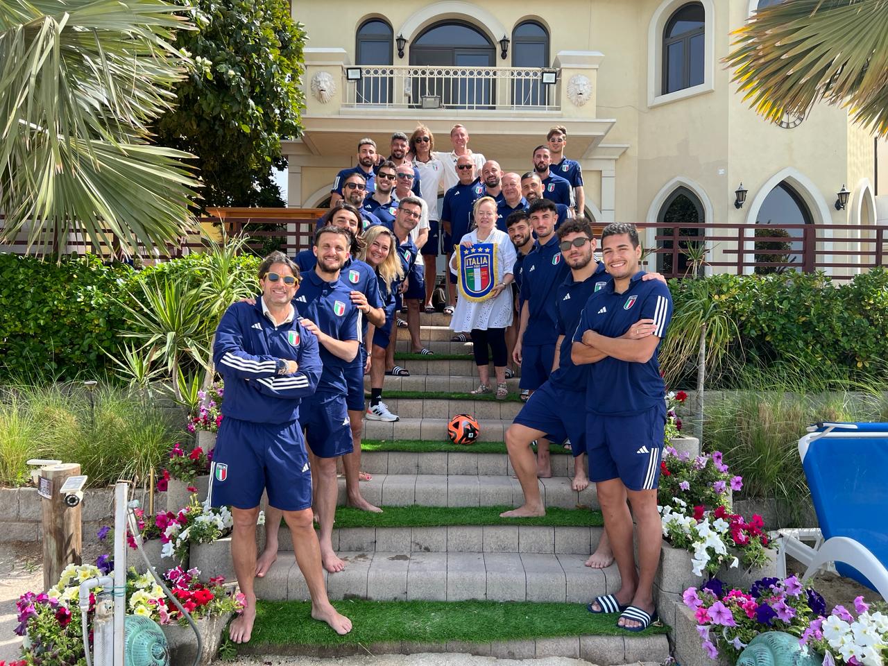 ALLA. Nel frattempo gli Azzurri hanno dalla loro anche il tifo dei tanti italiani presenti a Dubai. Una comunità molto forte, di cui la Dott.ssa Valeria Di Santo Della Penna è presidente e a cui la Nazionale ha fatto visita quest'oggi, dopo che la stessa Di Santo ha seguito in prima persona dalla tribuna le partite degli Azzurri al Mondiale. Nei giorni scorsi, invece, è stata fatta vivere un'esperienza unica al giovane Filippo Fumagalli, 17 anni, originario di Monza, da 8 residente con la sua famiglia a Dubai: sogna di fare il medico e ha passato l'intera giornata di domenica assieme alla squadra, assistendo agli allenamenti, pranzando con i ragazzi e 'spiando' il dietro le quinte in hotel. Una squadra, che oltre a Del Duca e Feudi, parla terracinese anche con Ovidio Alla, che Palmacci in chiusura indica come suo erede: “Un giocatore fortissimo, che ho voluto fortemente a Napoli lo scorso anno. Prima di tutto è un ragazzo d’oro, una persona splendida. Può crescere ancora come beacher, spero si sblocchi e possa segnare, mi rivedo tanto in alcune sue caratteristiche tecniche e tattiche”. Detto da uno dei giocatori più belli ed eleganti da vedere in assoluto, c’è da crederci.