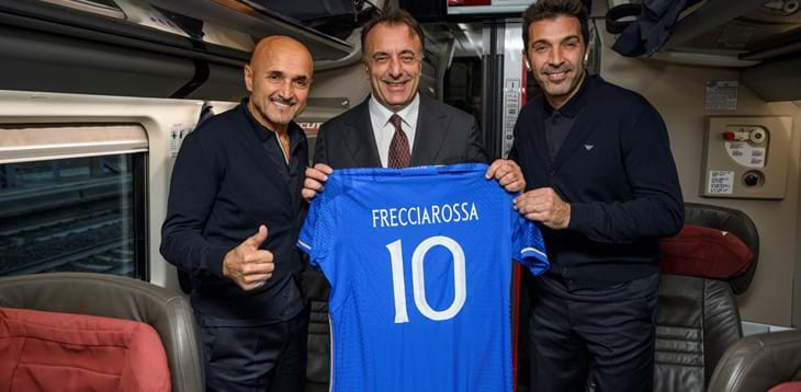 Da Firenze a Roma, la Nazionale italiana viaggia con Frecciarossa, che dal 2016 è il vettore ufficiale degli Azzurri per spostamenti via terra. A bordo del treno che ha portato gli Azzurri nella Capitale, sede della partita di venerdì sera contro la Macedonia del Nord, anche il Direttore Business AV di Trenitalia Pietro Diamantini, che ha viaggiato a fianco del commissario tecnico Luciano Spalletti e del capodelegazione Gianluigi Buffon.
