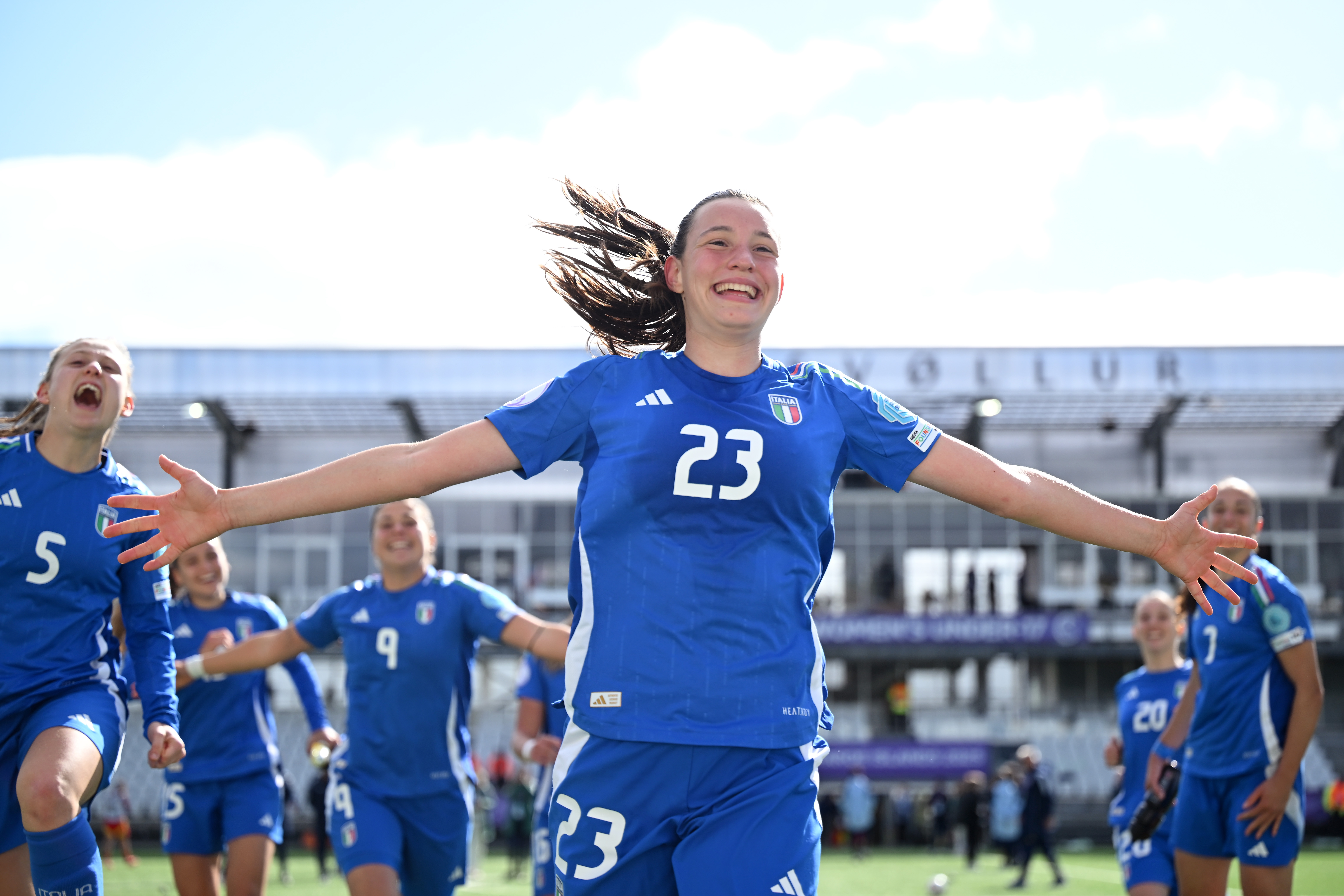 Di intensità, sacrificio, voglia e abnegazione: un successo da vera Italia, di quelli che rimangono incollati nella memoria e che segnano anche un pezzo di storia del nostro calcio: la Nazionale Under 17 femminile supera per 2-1 le campionesse in carica della Spagna e si qualifica – dopo undici anni - per le semifinali dell’Europeo e, automaticamente, anche per i prossimi Mondiali di categoria in programma dal 17 ottobre in Marocco. Una vittoria straordinaria, condensata negli abbracci delle ragazze, capaci di stringere i denti per novanta minuti e di resistere agli assalti avversari, salvo poi trafiggerle in contropiede alle prime occasioni possibili.