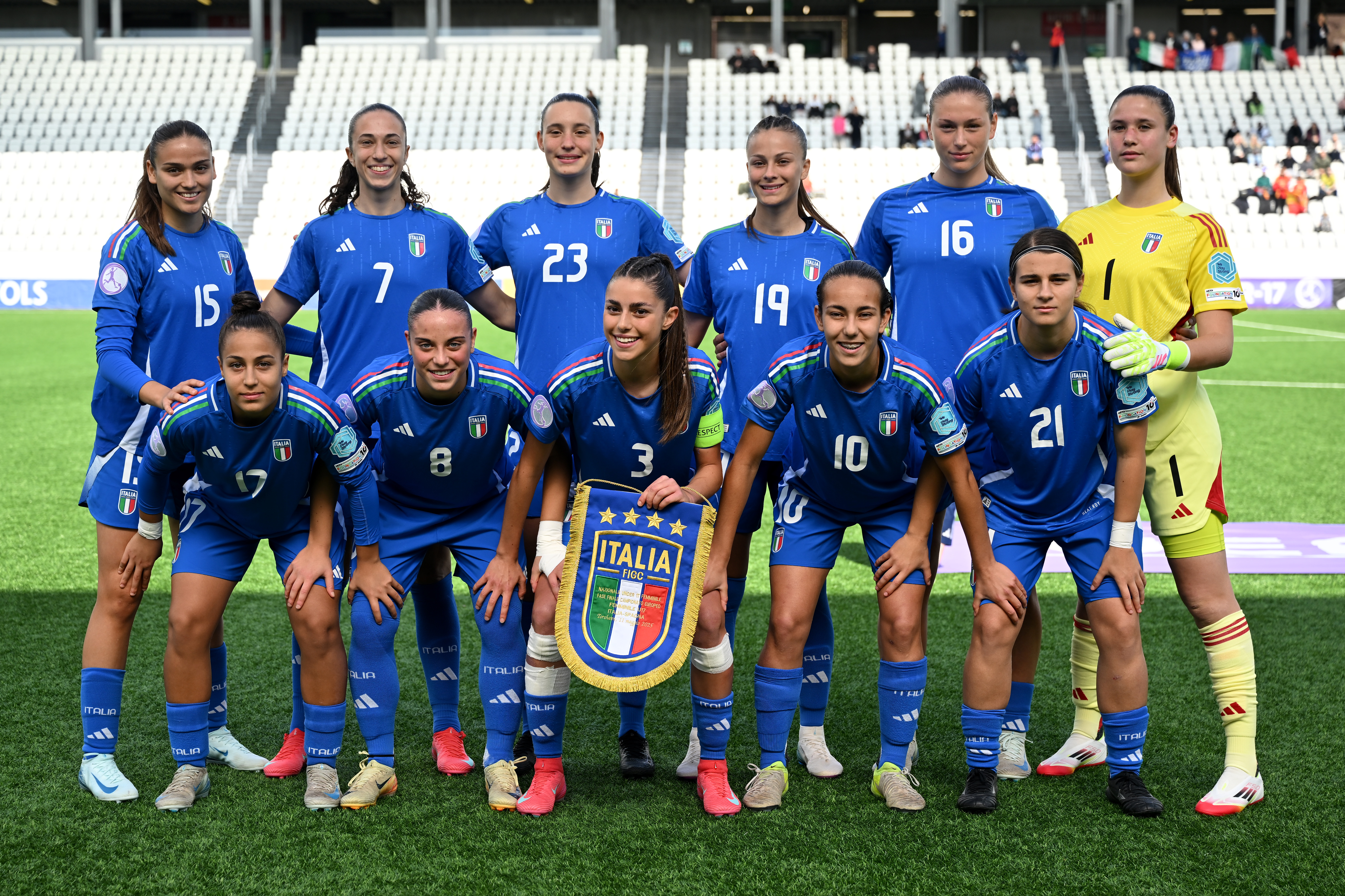 ITALIA: Robbioni; Venturelli, Bressan, Verrinin (45’st Pomati), Randazzo; Piccardi, Giudici, Bedini (1’st Copelli), Guerzoni (37’st Bertero); Romanelli (50’st Ieva), Galli (50’st Sasso). A disp.: Sossai, Robino, Gianfico, Terlizzi. All.ce: Mazzantini