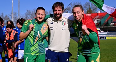 Quando gli vengono riportati i complimenti del presidente federale, Nicola Matteucci si emoziona. È stato appena lanciato in aria dalle sue ragazze, festeggiato a dovere per questo straordinario risultato. E nella gioia collettiva, mentre i tricolori vengono sventolati in campo e alcune lacrime rigano di gioia i volti di calciatrici e personale dello staff, il tecnico trova le parole per raggruppare in frasi la sua gioia: “È davvero un’emozione aver centrato la qualificazione. Anzi, sono state tante emozioni, tutte insieme; è stata una continua crescita di queste ragazze, che hanno trovato sempre più consapevolezza nelle proprie abilità tecniche. Hanno fatto delle belle prestazioni, mai sotto tono, e questo è quello che ci rende orgogliosi. Il nostro ringraziamento va poi alla Federazione, che ha messo il meglio a disposizione di queste calciatrici per ottenere questo straordinario risultato”.