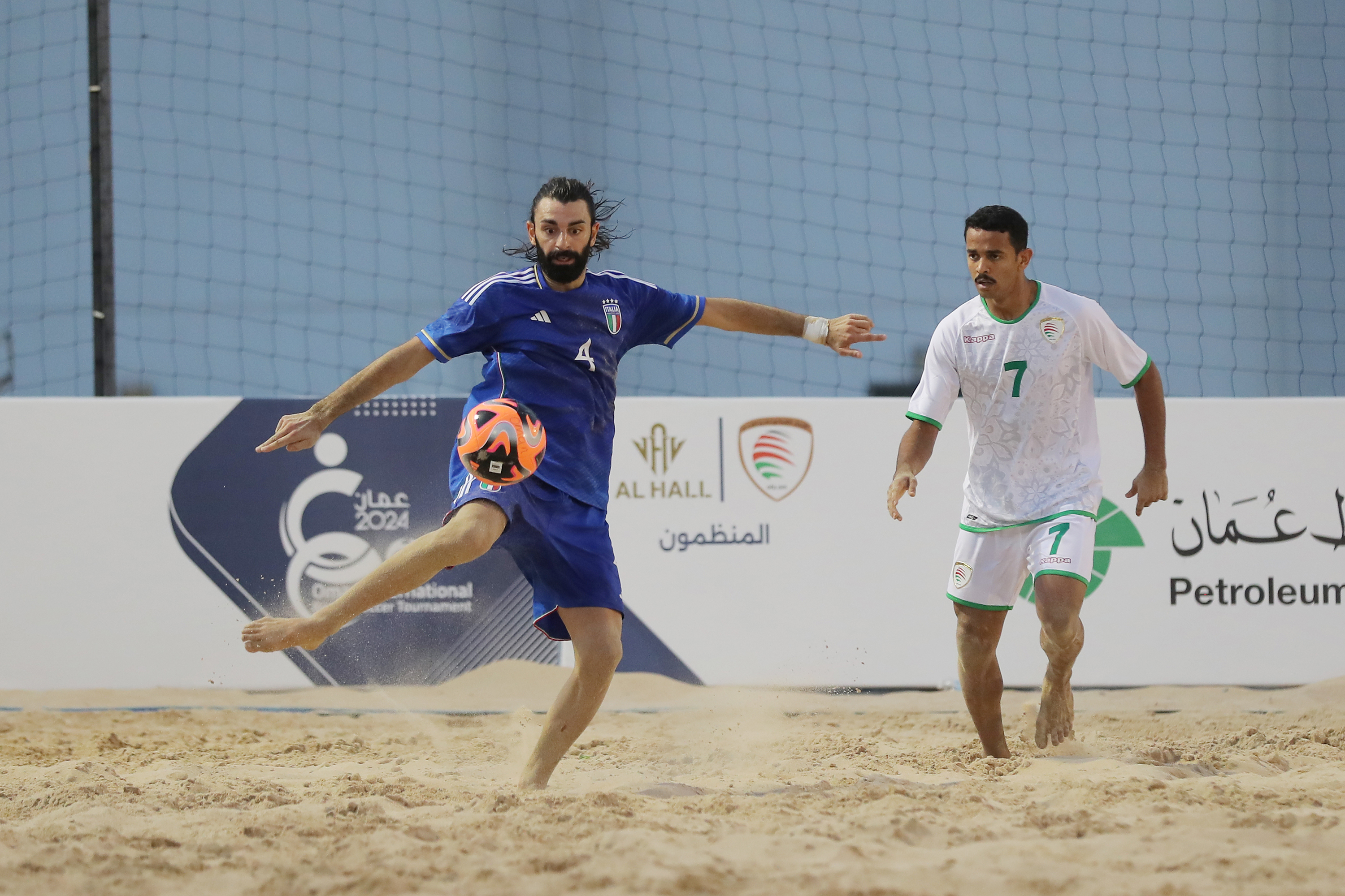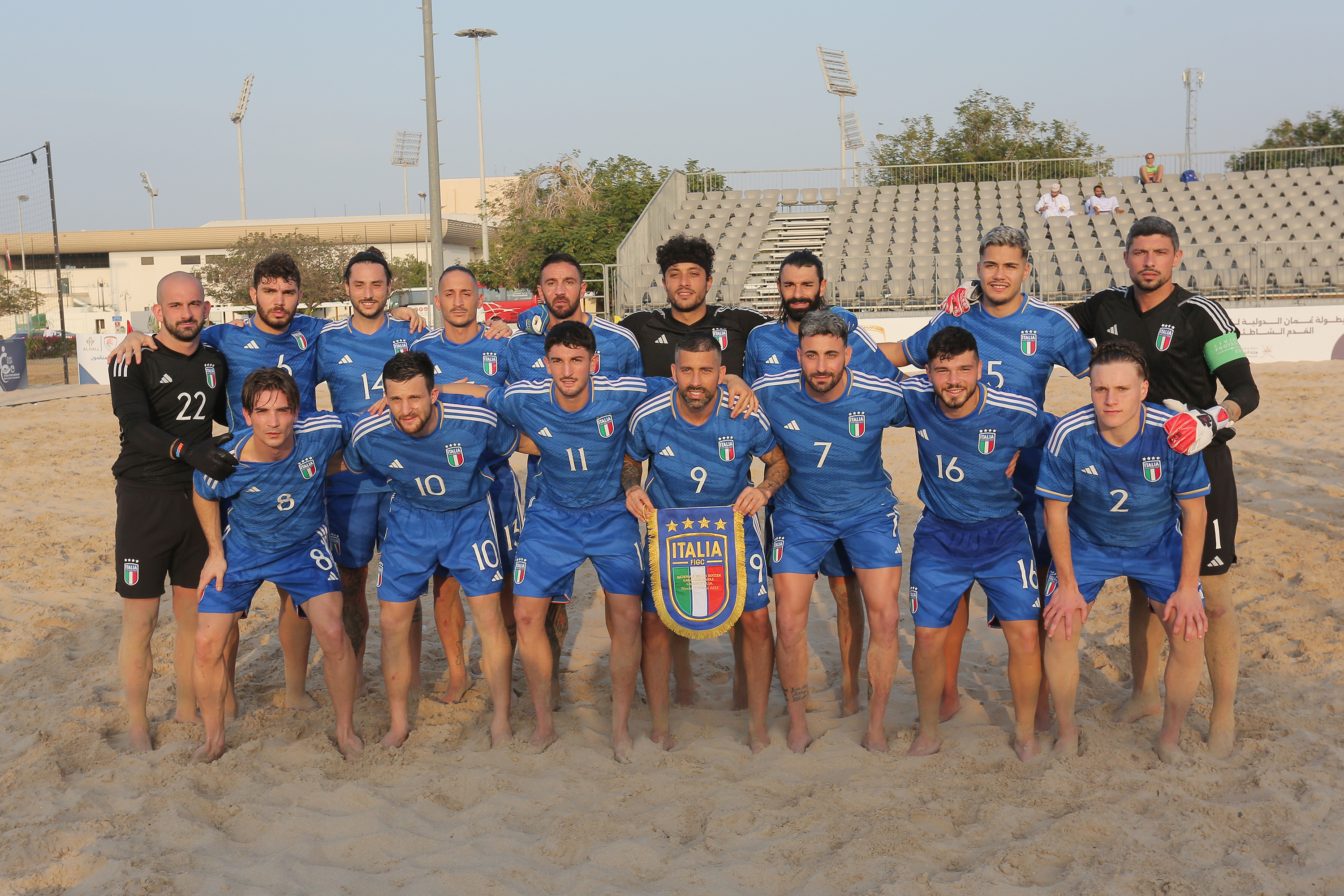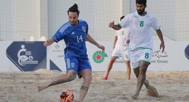 Un passo davanti all’altro, senza esagerare e con ben chiaro il sentiero da seguire. La Nazionale italiana di beach soccer ha affrontato oggi il secondo test del suo raduno di preparazione al Mondiale. Al cospetto dell’Oman padrone di casa e sotto gli occhi dell’ambasciatore italiano Pierluigi D’Elia – già incontrato martedì 30 gennaio – gli Azzurri hanno giocato partita vera, uscendo sconfitti 5-4. Per i ragazzi di Del Duca, che ha tenuto a riposo Zurlo, Alla e Fazzini per una fisiologica rotazione dettata dai carichi di lavoro, sono andati a segno Genovali (doppietta a cavallo fra primo a secondo tempo), Bertacca (12’ st) e Giordani (10’ tt). Domani, con calcio d’inizio alle 15.30 l’ultimo test a Muscat – sempre contro l’Oman – prima dello spostamento a Dubai e l’ufficializzazione dei 12 calciatori che prenderanno parte al Mondiale.