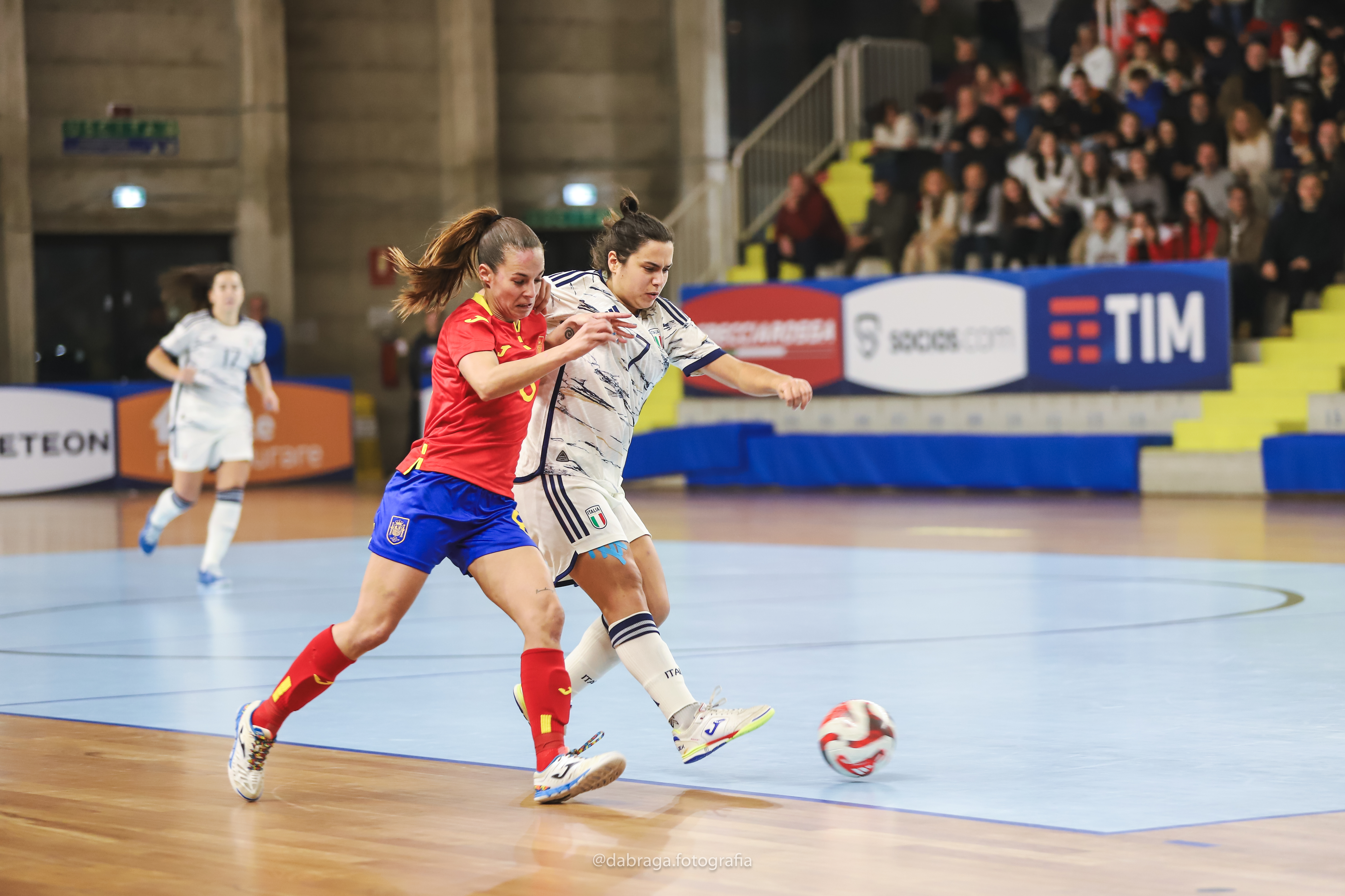 In avvio di secondo tempo la Spagna va vicina al pari (3’) con il mancino di Luci che si spegne sulla base del palo. Le ragazze di Claudia Pons provano a fare il massimo sforzo alzando i giri del motore. La difesa dell’Italia tiene concedendo solo conclusioni dalla distanza. Sono anzi le Azzurre ad andare vicine al raddoppio su schema da calcio d’angolo, ma il tiro di Boutimah viene respinto dalla pronta spaccata di Ari, il portiere iberico classe 2005. A 7’ dalla fine Ferrara prova il gol dell’anno: su lancio lungo in area di rigore trova un colpo di tacco incredibile che si spegne di un soffio sul fondo. Ma quando la Spagna corre un pericolo ha l’incredibile capacità di alzare il proprio livello di gioco: Samper mette dentro per Sotelo che di mancino batte Sestari: è 1-1 a 6’ dalla fine. Coppari e compagne non si scompongono, creano una grande occasione al 16’ sulla bella giocata di Adamatti, ma sulla ripartenza la Spagna trova il vantaggio con Luci al termine di un’azione convulsa. La partita cambia forma ancora: nel giro di un minuto Laura Cordoba si prende due ammonizioni e finisce anzitempo la sua partita. Le Azzurre hanno la grande chance di giocare con la superiorità numerica: proprio allo scadere dei 2’ con la giocatrice in più, l’Italia segna con Adamatti, pareggiando la partita a 1’ dalla sirena. Pons vuole vincerla e mette il portiere di movimento, ma il punteggio non cambia più: l’Italia strappa il secondo pari della sua storia alla Spagna, nuovamente 2-2 come un anno fa a Las Rozas.