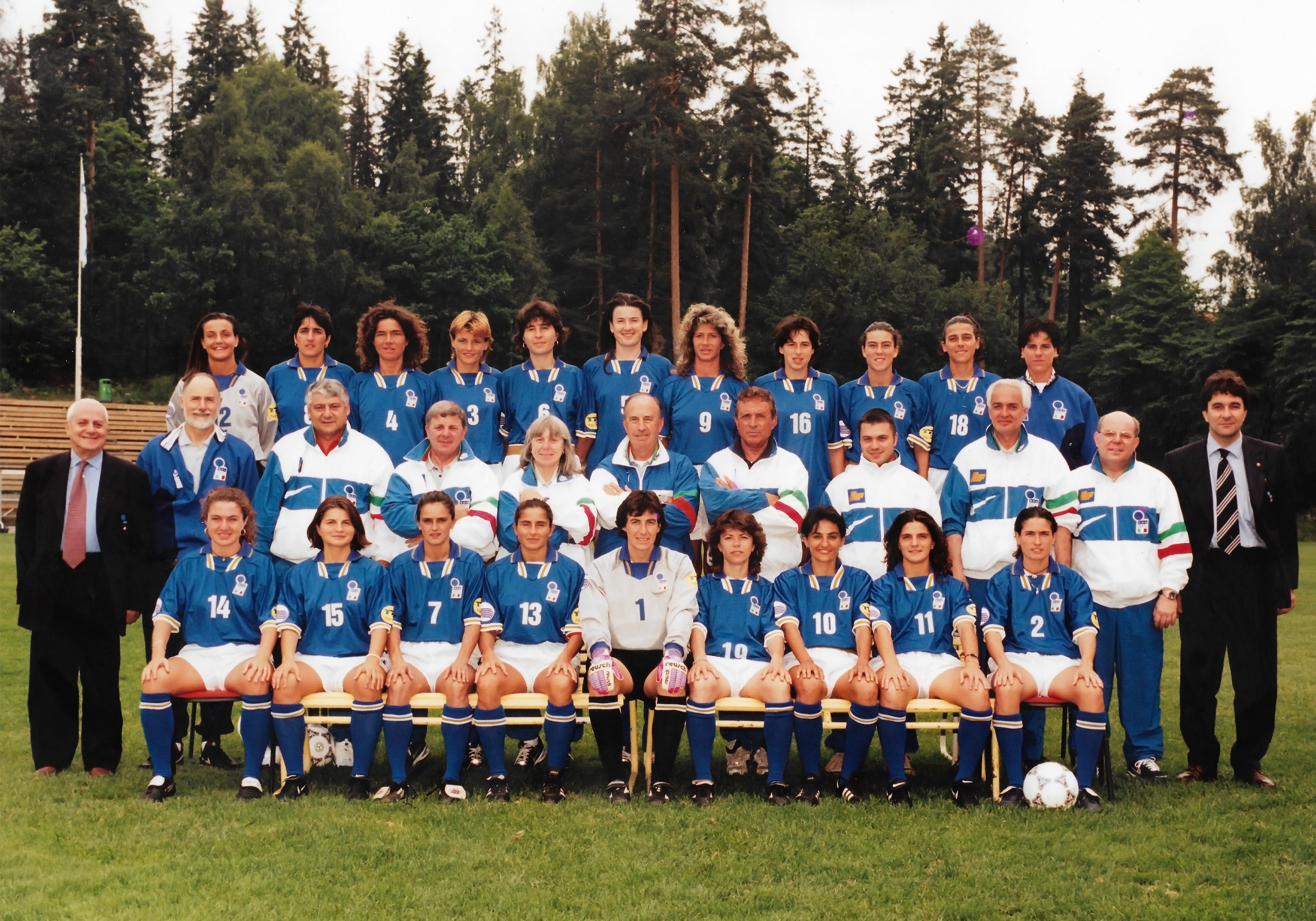Nel 1993, le partecipanti salgono dalle 14/18 degli anni precedenti a 23: nel girone 7 l’Italia è primadavanti a Cecoslovacchia e Polonia (3 vittorie e 1 pareggio, il 2-2 a Jesolo con le cecoslovacche). Dopo aver eliminato nei quarti l’Inghilterra (3-2 a Avellino con doppietta Morace e gol di Fiorini e 3-0 a Rotheram, con 2 autoreti inglesi e rete di Morace), all’Italia è affidata l’organizzazione della Final Four, prima e unica volta che l’Europeo Femminile si assegna nel nostro Paese. Le semifinaliste sono le stesse dell’edizione precedente: Italia, Norvegia, Danimarca e Germania. Si gioca in Romagna, le Azzurre scendono in campo a Rimini, stadio “Romeo Neri”, il 30 giugno, per la semifinale con la Germania: 1-1 al 90’ (reti di Morace e Mohr), con le tedesche in 10 per l’espulsione di Nardelbach nel finale. Si va quindi ai rigori. Dopo il ko del 1987, l’Italia si prende la rivincita: segnano Salmaso, Ferraguti, ma anche Marsilletti e Iozzelli che avevano sbagliato 6 anni prima; per le tedesche a segno solo Wiegmann, Austemuhl e Pohlmann. Il 4 luglio 1993 al “Manuzzi” di Cesena l’Italia gioca la sua prima finale Europea: la generazione delle fenomene, però, non riesce a superare la Norvegia, che al 75’ (Hegstad) sblocca la finale e conquista il suo secondo titolo continentale, che resta anche l’ultimo nel suo Palmares.